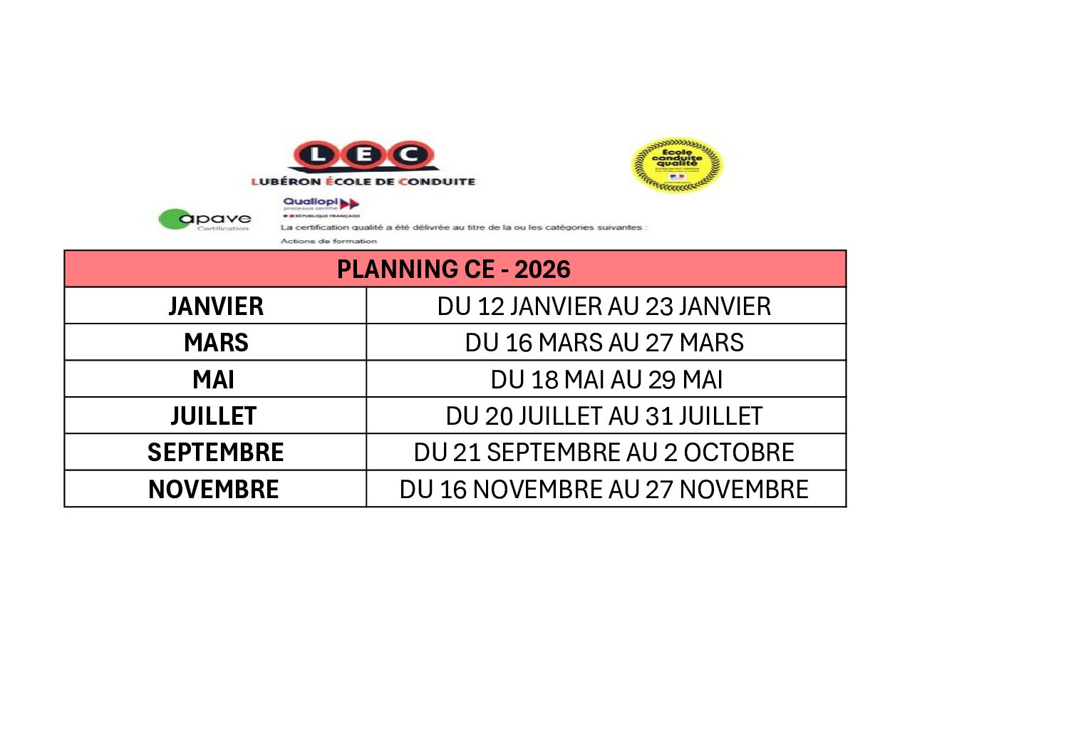 LEC LUBÉRON École de conduite à Peyrolles (13) vous propose :