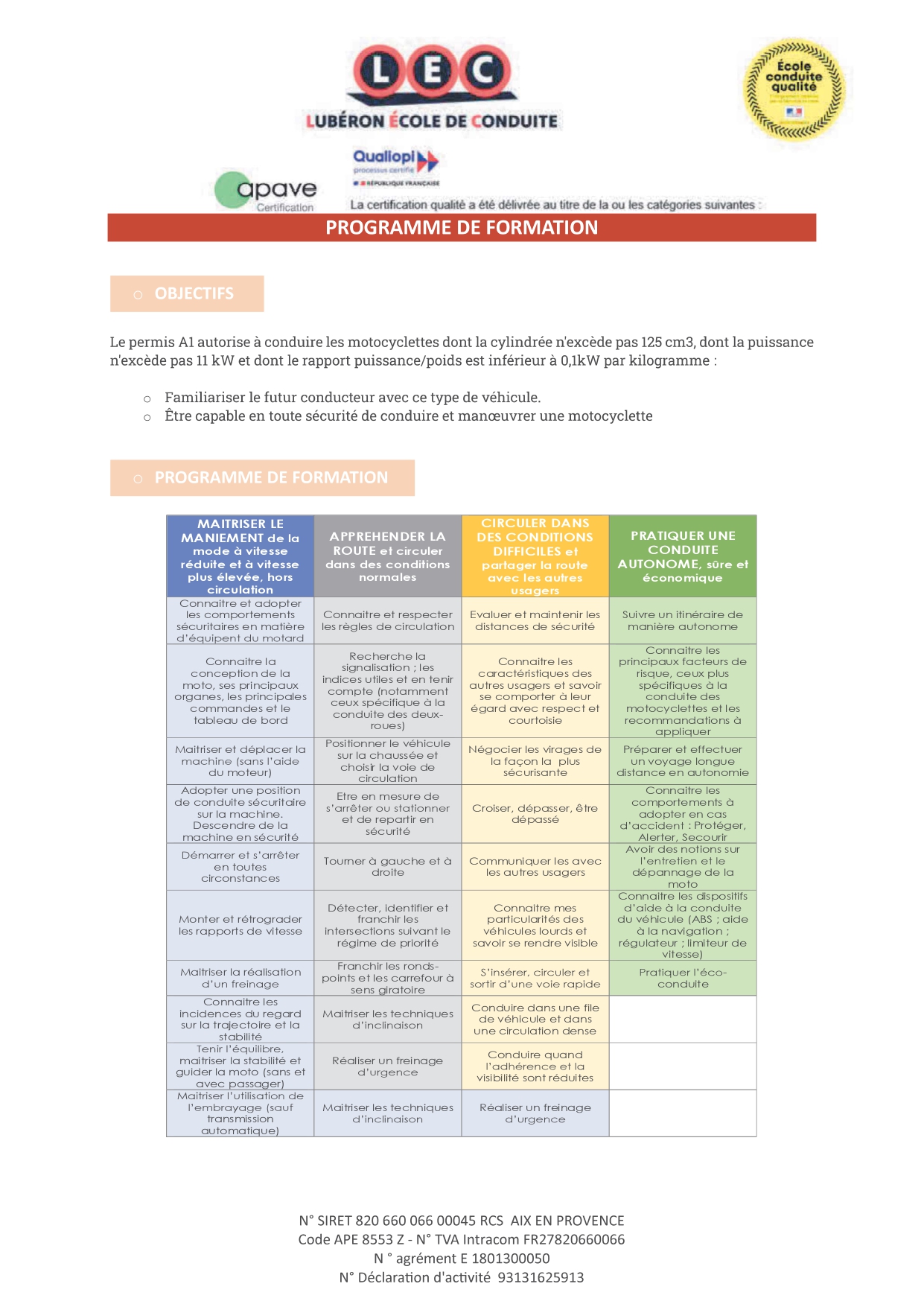 LEC Lubéron École de conduite vous présente son nouveau Planning de formation A2/A1 pour l’année 2024.
