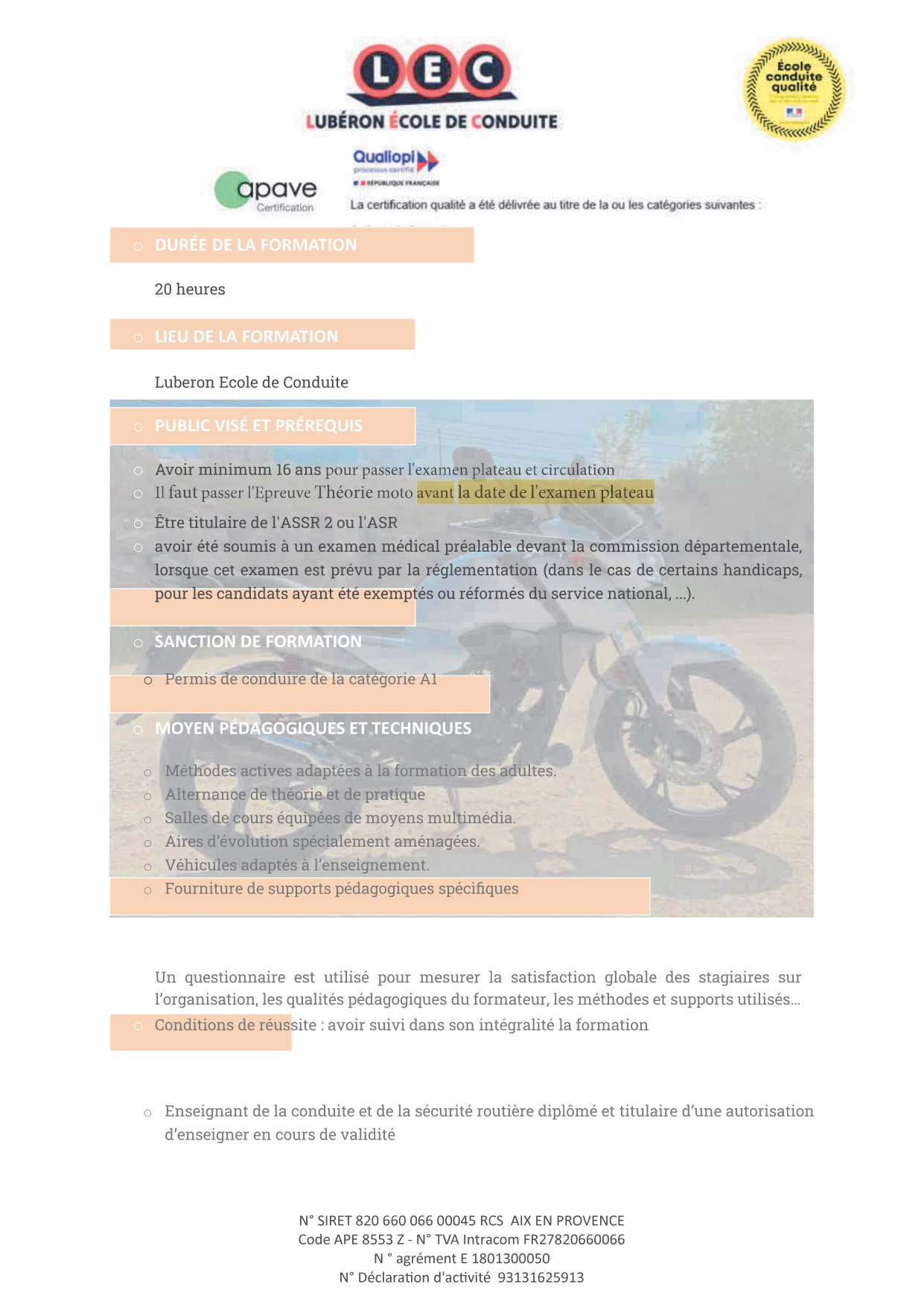 L’auto école de Peyrolles (13) vous propose de passer le Permis A1